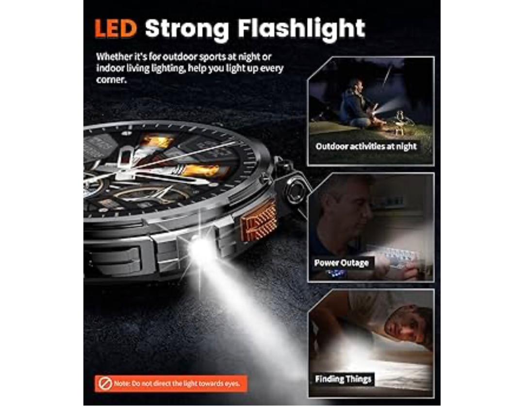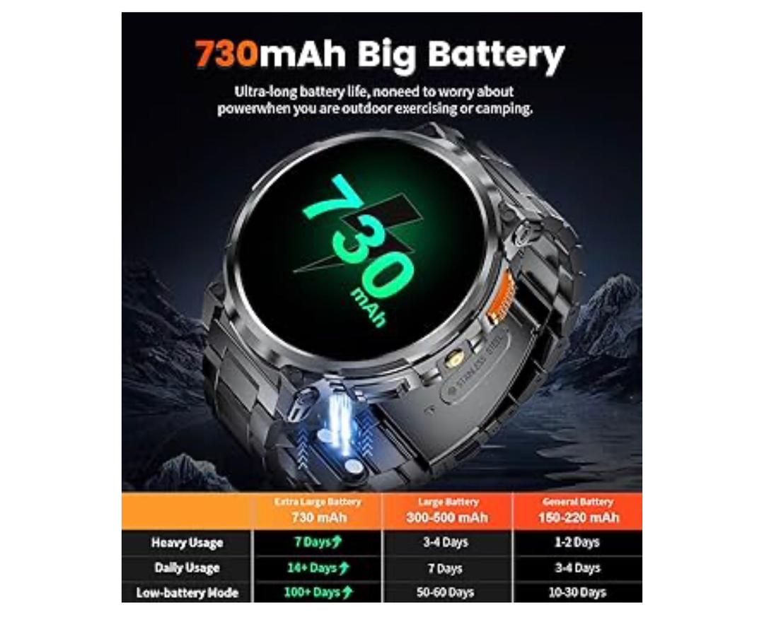 Smart Watches for Men with 1.85″ Screen, 730mAh Battery Fitness Tracker with Flashlight/Make/Answer Call/120Sports Mode/Sleep Monitoring/Heart Rate Monitoring, iOS Android waterproof Sports Watch